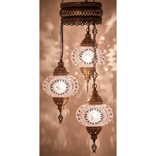 Transform your living space into a mesmerizing oasis with our stunning collection of Turkish mosaic chandeliers. Crafted with meticulous attention to detail, each chandelier boasts a unique blend of vibrant colors and intricate patterns, handcrafted by skilled artisans. Whether you're looking to add a touch of exotic flair to your home or create an enchanting ambiance in a commercial space, our mosaic chandeliers are sure to impress.