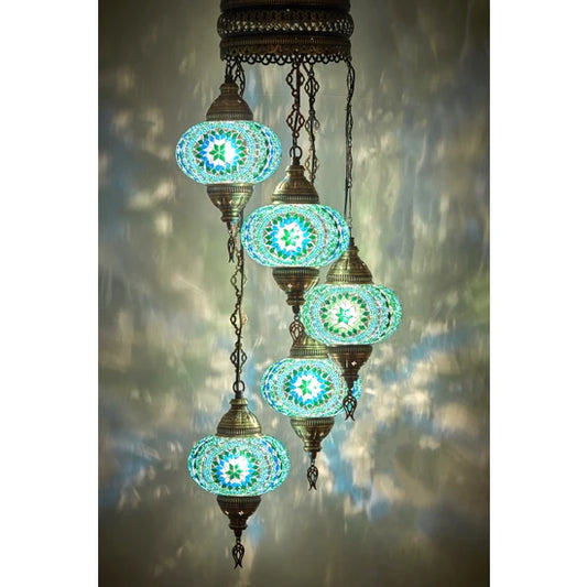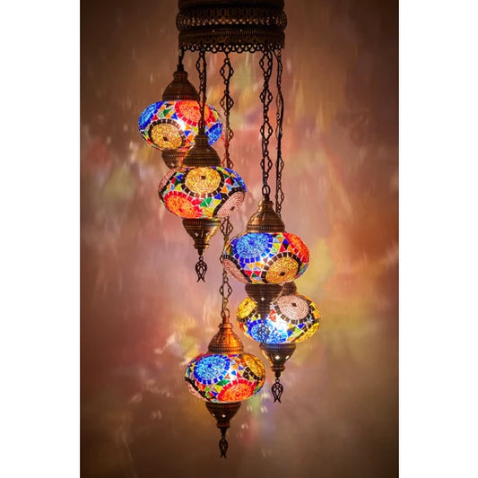 5 Globe Colourful Turkish Mosaic Hanging Lamps