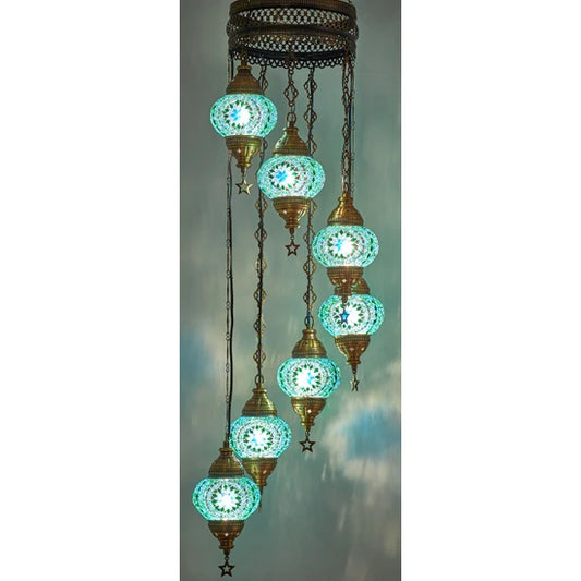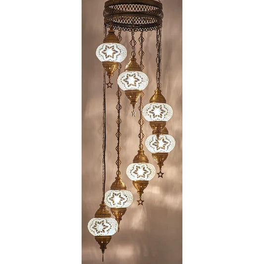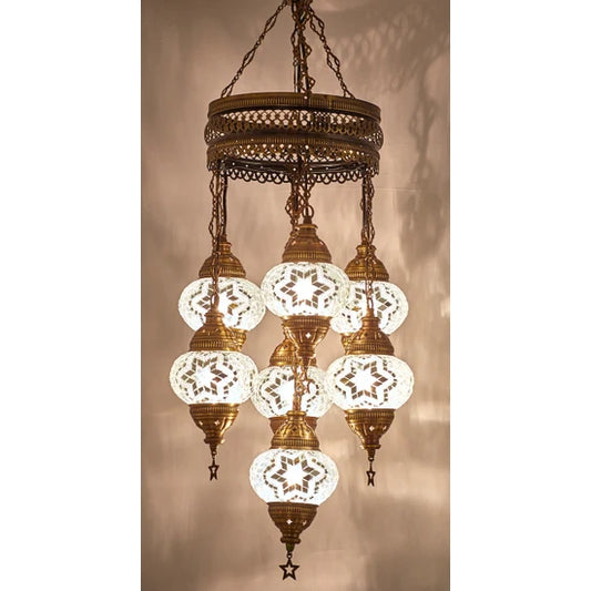 Transform your living space into a mesmerizing oasis with our stunning collection of Turkish mosaic chandeliers. Crafted with meticulous attention to detail, each chandelier boasts a unique blend of vibrant colors and intricate patterns, handcrafted by skilled artisans. Whether you're looking to add a touch of exotic flair to your home or create an enchanting ambiance in a commercial space, our mosaic chandeliers are sure to impress.
