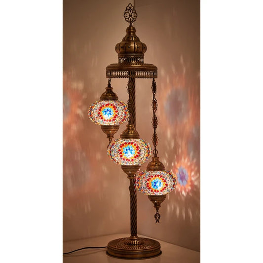 3 Globe Turkish Stained Glass Floor Lamp