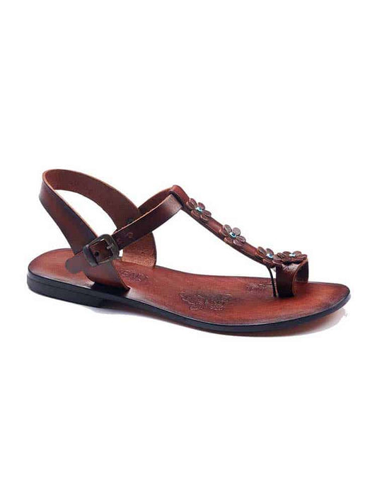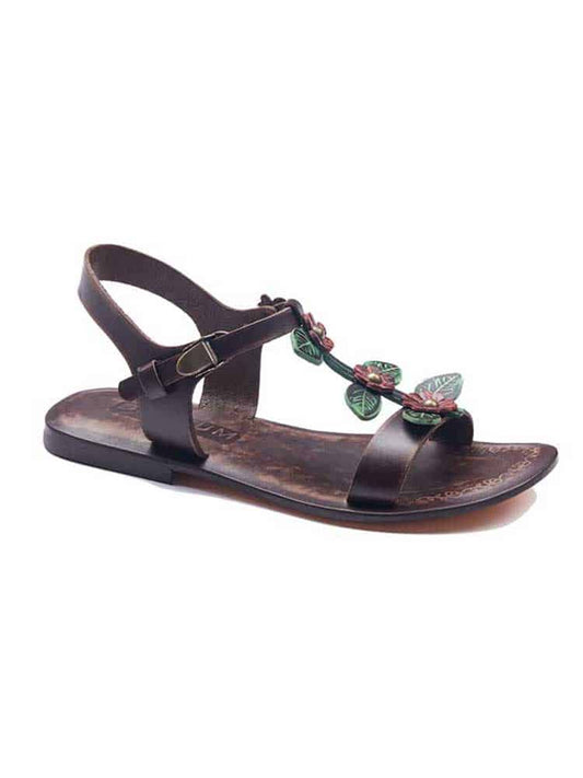 Flower Strapped Brown Women Sandals