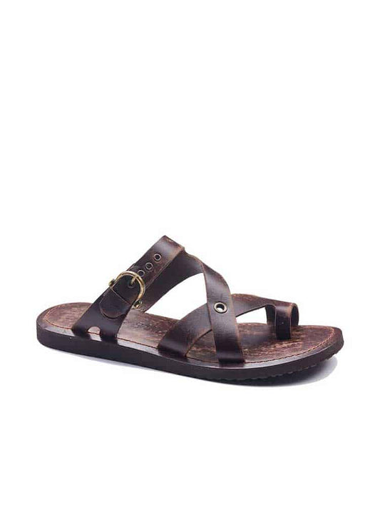 Mens Leather Sandals Toe Thong Brown