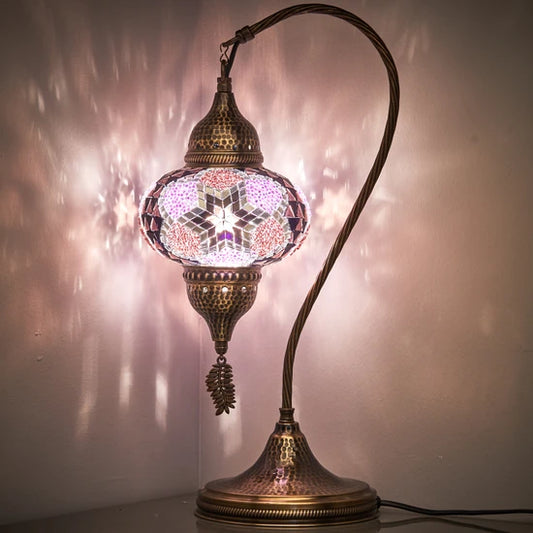 Pink Turkish Mosaic Glass Tabletop Night Lamp