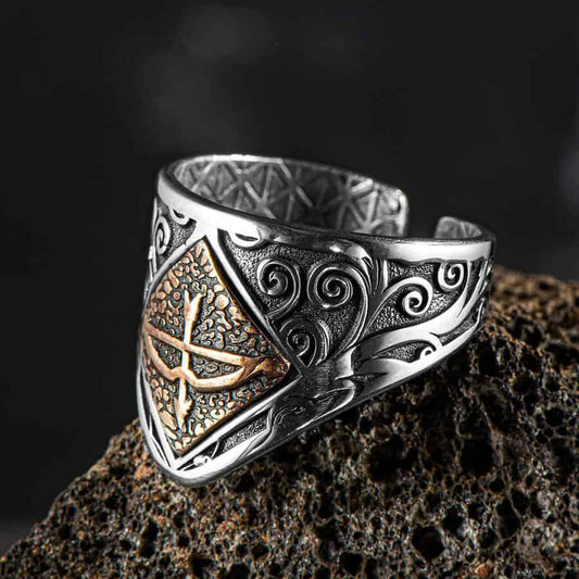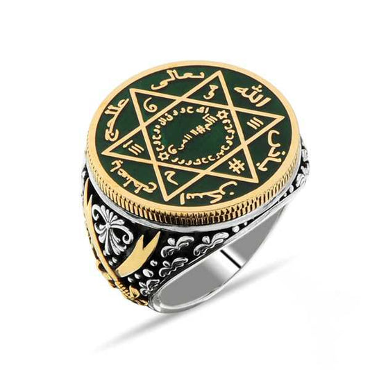 Great Seljuk Eight-pointed Star Arrow Bow Men's Silver Thumb Ring