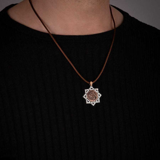 Shahada Antique Silver Men Necklace with Leather Cord