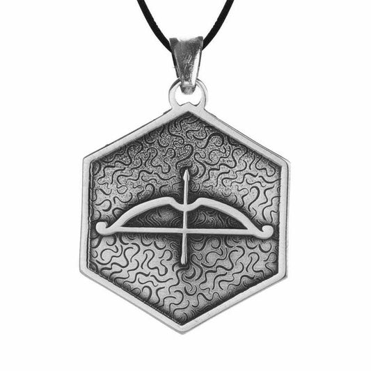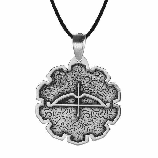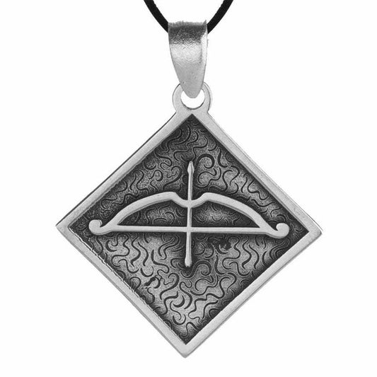 Big Arrow Bow Antique Silver Men Necklace Leather Corded