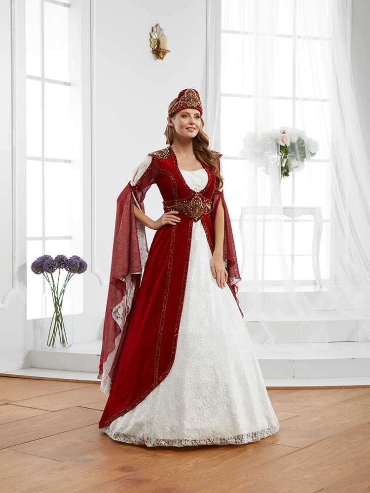 Elegant Red Kaftan Set is fashionable dress which is dark red and you can buy this caftan or kaftan online. Turkish traditional clothes are luxury bridal dresses for special days and nights for sophisticated women. It is fashionable caftan dress. This elegant bridal dress has handmade embroidery details on it. We use fine fabric. We offer you custom made. It is the dress who is looking for to be outstanding