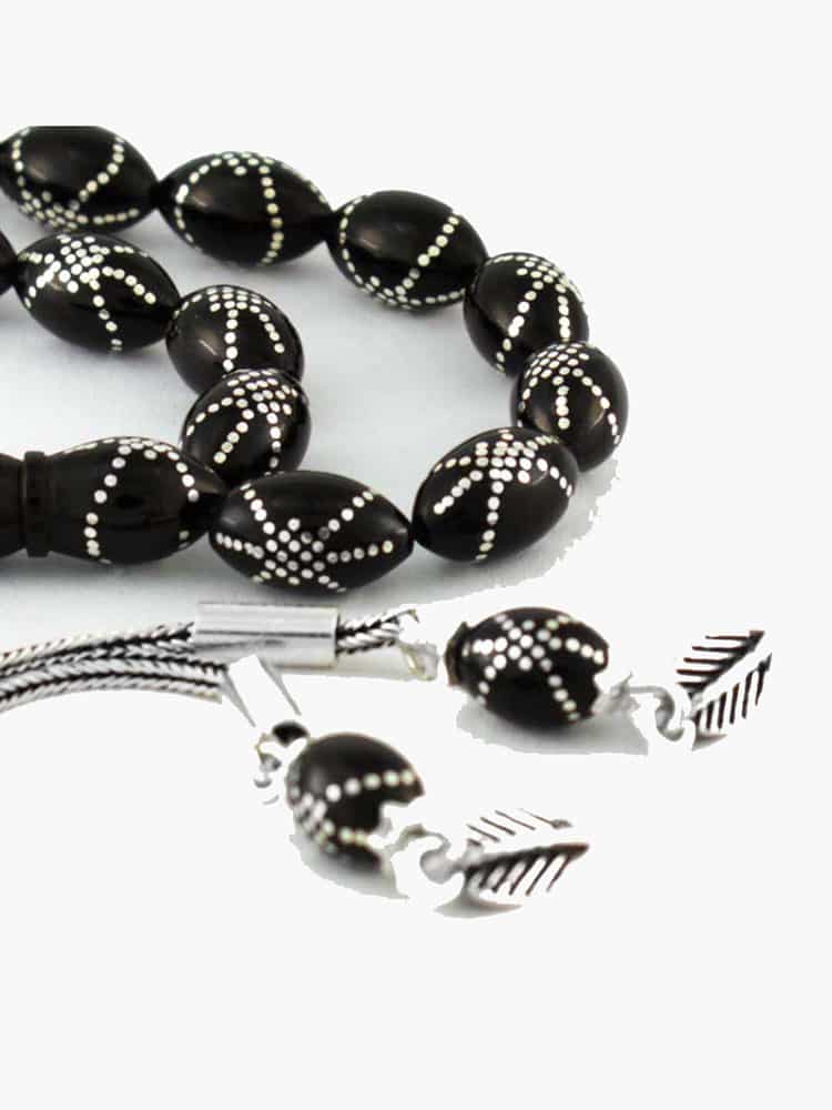 Oltu Silver Detailed Paternoster is handmade paternoster, Oltu stone's another name is Black Amber which is semi precious stone. You can use Oltu Silver Detailed Paternoster as a jewelry or let off your steam by using it. Our artisans hand carve this semi precious stone. Erzurum is famous for its black amber. They use it for jewelry.